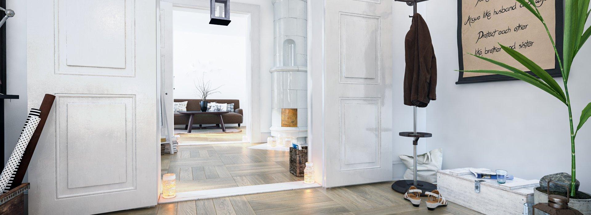 Den diskrete farve fremhæver skønheden i det naturlige råmateriale. Gulvet passer perfekt til restaurerede interiører i gamle lejlighedshuse. Kombineret med klassisk hvidt vil det tilføre lyshed og hygge til et rum.